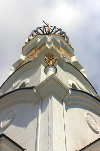 впереди что-то необычное - храм? с таким куполом? да, Храм Петра и Февронии
