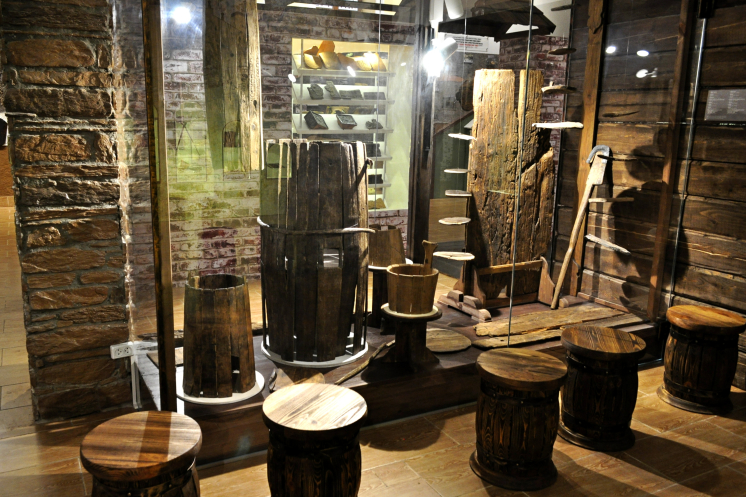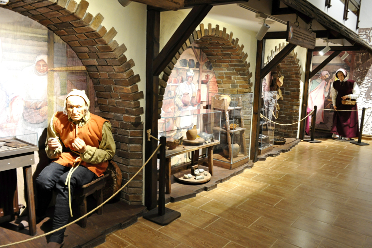 Ну а потом надо спускаться на уровень вниз, и там… там совершенно потрясающие секции-композиции, представляющие сочетание восковых фигур в нужном облачении по родам занятий и найденные/сохраненные экспонаты.