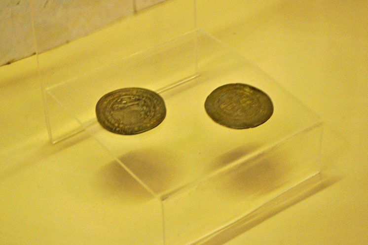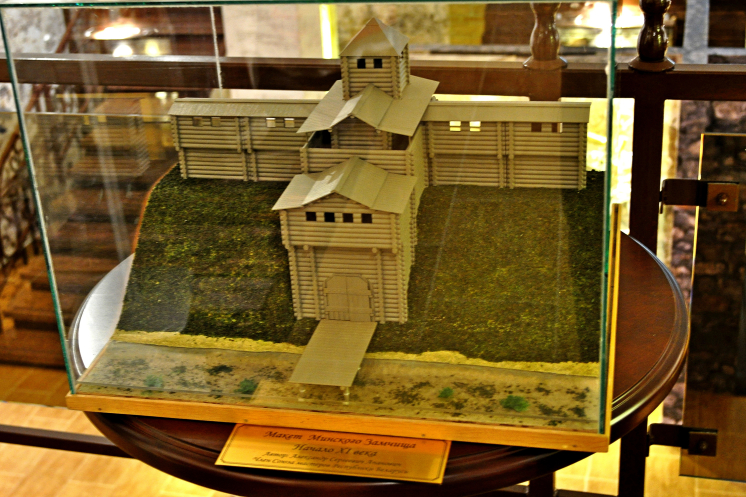 Первое беглое впечатление – как-то всё скудненько. Но я же уже тут, поэтому… сначала макеты с артефактами – ну городище как городище (и то, что изначально было на реке Менке, и то, куда потом жители переехали – собственно, с 1067 года Менск), замчище как замчище… Интересно, конечно, посмотреть на копии византийских монет (собственных тогда не чеканили ни на Руси, ни в этих землях, видимо) и на нашейные гривны. На гривны даже интереснее, наверное – все-таки Минское (Менское) княжество существовало с XII по XIV вв. как удел полоцких земель. Время тогда было интересное, насыщенное событиями и притязаниями… Так что куча представленной мелкой монеты тоже интересна, в рамках римско-византийского права как монетная регалия…