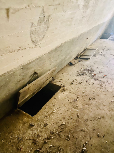 Говорят, что эти погреба - старые финские амбары-зернохранилища. В советский период их использовали для хранения картофеля. Это длинные (больше 50 метров) двухэтажные сооружения, почти полностью засыпанные землей, с двумя входами. С одной стороны вход ведет на верхний этаж, откуда, судя по отверстиям в полу, засыпалось зерно в помещения первого этажа.