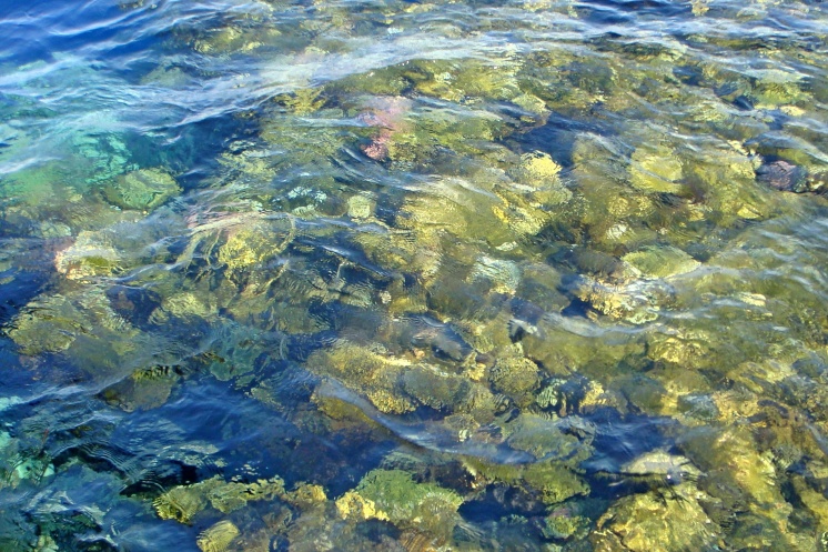 вид на тех, кто любит поближе к поверхности; но если приглядеться, там, на границе синей-синей воды, торчат головы и не только - любителей поглазеть на подводный мир