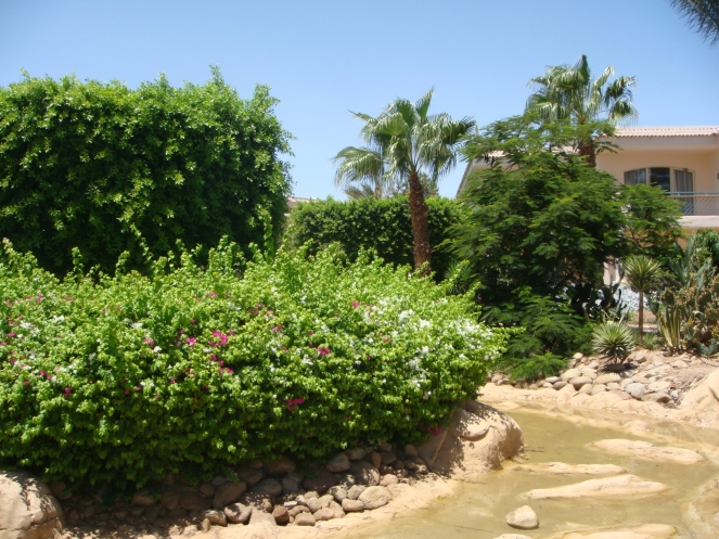 Правда, номер был на первом этаже… С другой стороны, тем же вечером мне удалось потребить по назначению все блага такой этажности: моё сопровождение после дороги погрузилось в крепкий продолжительный сон, напрочь отказавшись увеселяться. Выходить через дверь было не слишком сподручно – карта-ключ обеспечивала работу кондиционера в номере, что по августовским погодам архиважно для красноморского побережья Египта, зато можно было проломиться сквозь живую изгородь террасы прямо в амфитеатр… это лично для меня куда проще, чем спрыгивать с балкона второго этажа, например… а потом забираться обратно в номер через этот же балкон… через изгородь и обратно сподручнее, как ни крути.