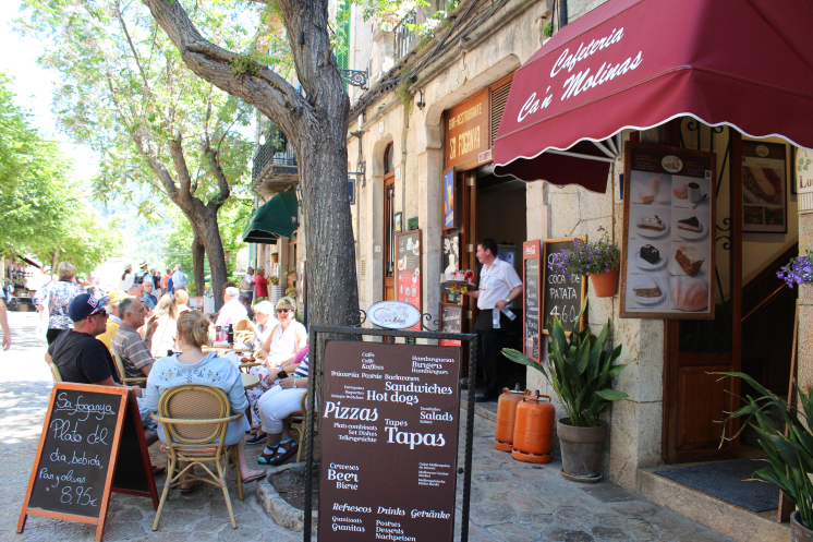 В городке много баров и ресторанов пользующихся большой популярностью у туристов. Здесь можно передохнуть и отведать ароматного кофе с популярными булочками Кока-де-Патата, рецент которых придумали именно здесь. Или выпить терпкого красного вина Macia Batle с вкусняшкой Собрасадой, красной рубленой свиной колбасой со специями, секрет которой изобрели здесь на острове Майорке. Ну или просто с любыми тапас, не ошибётесь)