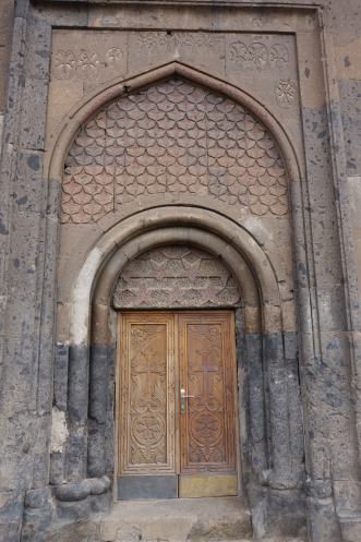 По плану мы должны были попробовать 3 вина, в результате я попробовала 6 или 7: сопровождавший меня гид не пил, а для меня девушка не пожалела по глоточку разных вин, видя мой неподдельный интерес. Я спросила про вино, сделанное не по европейской технологии, а по старинной, в кувшине. Глоточек был сильно маленький, не распробовала, но разница есть. Еще она меня угостила гранатовым вином, которое было вовсе не гранатового, как в Турции, а коньячного цвета. Сухое, полусладкое, белое, красное… Бутылку красного полусладкого я купила, хотя при дегустации глубокого впечатления оно на меня не произвело: глоток сильно маленький был, но надо же было как-то неделю коротать вечера в Ереване. Кстати, при более внимательной дегустации вино оказалось неплохим, хотя пить пришлось из чайной чашки (бокала в номере не было). В Сагмосаванке гид рассказывал, что армянские храмы не принято украшать: если бы их украшали, как православные, их бы грабили и разоряли гораздо чаще. Я напомнила ему про армянскую церковь Св.Креста на острове Ахтамар озера Ван, которая снаружи полностью покрыта резьбой на религиозные и светские темы, и армянский храм в Исфахане, разукрашенный почище иной мечети. Он ответил, что резьба – это другое, а богато украшать стали более поздние храмы и храмы на чужих территориях, согласно местным традициям. Может быть, но и первые православные храмы на Руси не очень-то золотили!