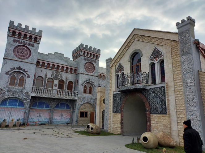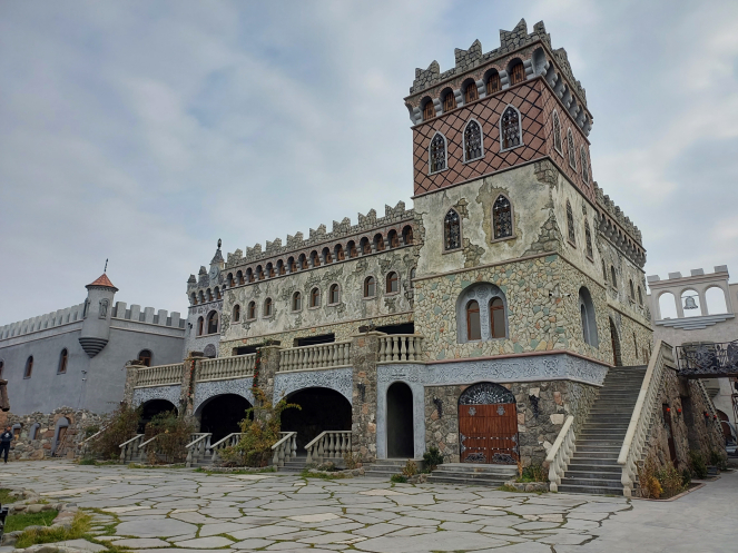 Особенность построек из туфа – по ним не определишь время создания. Даже ереванские «хрущевки», построенные из туфа, смотрятся благородно. Дальше мы поехали на дегустацию на завод Воскеваз. В советское время было деление: вино – грузинское, коньяк – армянский. Хотя существует и грузинский коньяк, и армянское вино. Завод был построен в 30-е годы 20 века, но после развала Союза его приватизировали и переименовали в Шато (замок) Воскеваз. Потом мода на французские названия прошла, завод называется просто Воскеваз, но территория оформлена в виде средневекового замка: брат хозяина художник и скульптор. Экскурсию проводили для меня одной: обычно одиноких туристов присоединяют к какой-нибудь группе, но меня присоединить было не к кому. Я еще до дегустации сказала проводившей экскурсию девушке: «Не знаю, какое у вас вино, но дизайнер у вас отличный!»