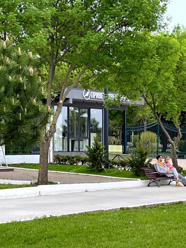 …За завтраком обсуждали, как будем добираться в парк Олимп. Дело в том, что изначальный план «поехать на авто» терпел крах: пустая на вчера парковка, на которой мы с комфортом разместили авто в углу в тени, на утро оказалась плотно заставлена другими авто, некоторые были с прицепами (народ ехал отдыхать с солидностью)… И если надеяться на то, что, предприняв некоторые активности, при удачном стечении обстоятельств, нужное авто удастся из угла извлечь, – ещё можно было, то вот поставить его обратно, пусть даже не в угол, а с краюшку, – казалось невероятным событием. Другой вариант – пешком – мог быстро привести нас в парк Сафари (минут 12-15 по козьей тропе; козы, понятно, городские), но нам было нужно именно в парк Олимп, который от места нашей дислокации был несколько подальше. Про цены поездок на такси мы в малой группе диаметрально разошлись мнениями (примерно раз в 5-6 был разброс), что, конечно же, затрудняло нахождение консенсуса. В качестве третейского судьи была привлечена администратор, успокоившая возмущенные умы, что такси от отеля в парк Олимп – это быстро, удобно и недорого. Она же такси для всей нашей малой группы и вызвала. Доехали в итоге рублей за 200 что ли, все остались довольны.