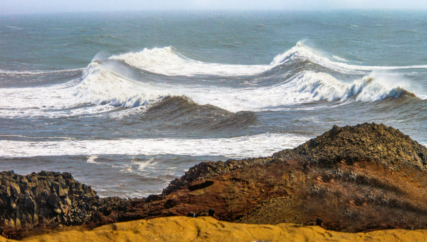 В главный аэропорт Исландии Кефлавик мы прилетели ночью 20 мая 2023, переночевали в ближайшей гостинице, утром получили заранее арендованный автомобль и отправились по намеченному маршруту. Погода совершенно не радовала. Моросил очень холодный дождичек, температура воздуха во время всей поездки держалась от 0 до +5 - +6 градусов (вместо обещанной долгосрочным прогнозом +12 - +15 градусов). В общем, померзнуть пришлось. Но, самое неприятное, это был почти постоянный ледяной ветер со скоростью от 20-25 до 35-37 м/сек. О таком ураганном ветре нас то и дело предупреждала СМС-ками прокатная контора, и из авто нам приходилось, порой, выходить, изо всех сил держа двумя руками двери, так и норовившие завернуться в неположенною сторону. Да и ехать приходилось не торопясь, ветер иногда очень старался сдуть машину с трассы.