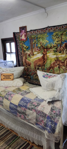 Удалось попасть в один дом,члены казачьего ансамбля любезно пригласили посмотреть единственный открытый дом,где они пребывали в промежутках между выступлениями.