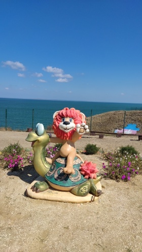 Прогулка получилась очень насыщенная.На территории есть детские площадки с героями сказок .А один край станицы выходит прямо на берег моря.