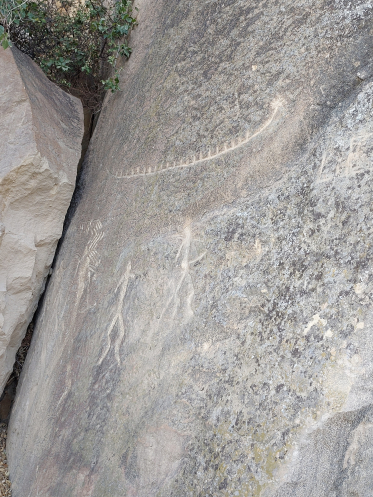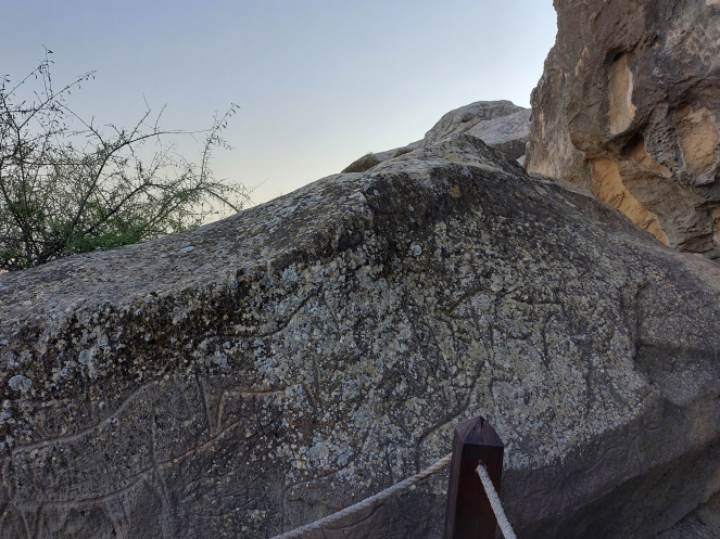 Ну а дальше – долгий путь в Баку. В тот день мы остались без обеда: Лара сначала спросила, хотим ли мы пообедать по дороге, а потом забыла, что мы хотели. Но зато нас ждал приятный сюрприз: позвонила представительница принимающей стороны и предложила завезти нас в Гобустан, раз мы не попали в Хыналыг – это было почти по пути в Баку. Конечно, мы согласились. Петроглифы много где есть, и в России тоже, но вот как-то не заносило меня в такие места. Сначала зашли в музей, а потом собственно на скалы. Народу было немного: и сезон не высокий, и день клонился к закату. Почему-то рисунки лучше видно на экране смартфона, чем невооруженным глазом.