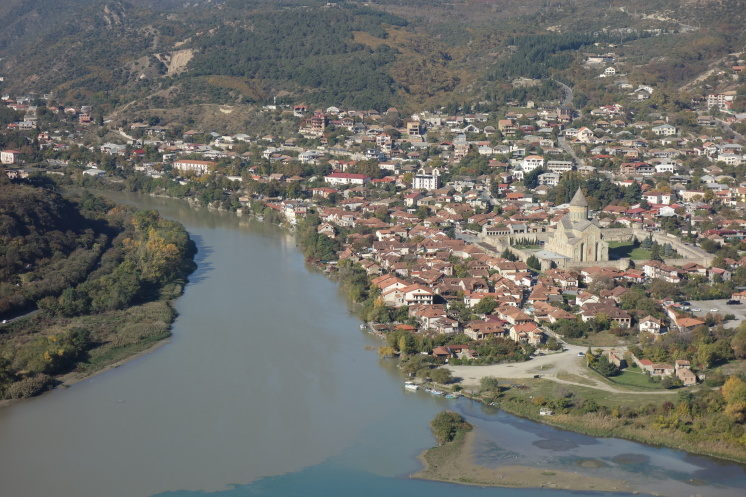 Первый экскурсионный день был почти полностью по старым местам, Мцхета и обзорная экскурсия по Тбилиси. Но в солнечный (хотя и с утра довольно прохладный) день те же монастыри и соборы смотрелись иначе, чем зимой, и разница в цвете сливающихся в одну реку Арагвы и Куры была заметнее.