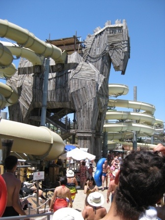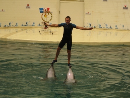 Аквапарк «Троя» и шоу дельфинов – отличный день! Выступление дельфинов, двух белух, ну и конечно «звезды» моржихи Сильвы – смотрели с детской радостью и восхищением, хлопая в ладоши! Но сам аквапарк не оставит ни кого равнодушным! Честное слово, лежать на шезлонгах, просто не было времени, мы как дети бегали от одной горки к другой, с визгом съезжали (в полной темноте) в закрытых горках. Но особо впечатлила горка, где вода поднимает тебя наверх! А прозрачный аквариум на территории парка с акулами и скатами (кстати, если есть желание, за дополнительную плату можно поплавать в этом бассейне… надеюсь, их до этого хорошо покормили…. и не туристом), они подплывают так близко, что можно дотронуться до них …но и зубы их тоже хорошо видны и это как-то остужает желание сунуть руку к ним.. После обеда включили бассейн с волнами – КЛАСС! Мы и не заметили, как подошло время уезжать … а жаль, успокаивало лишь то что еще впереди много интересного и завтра нас ждало новое приключение.