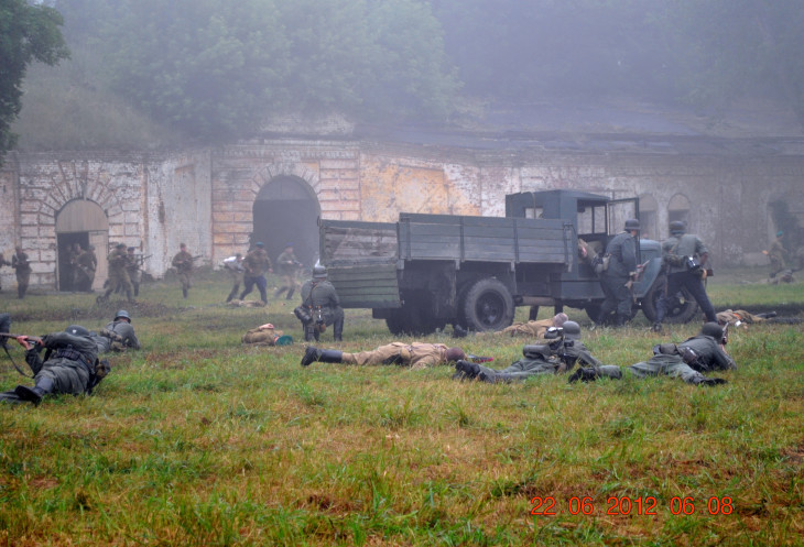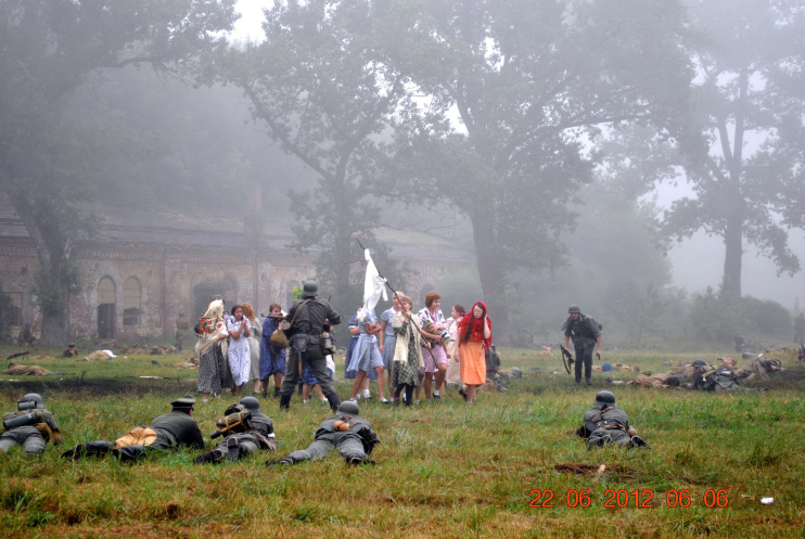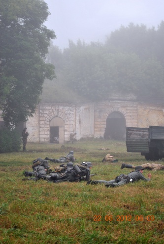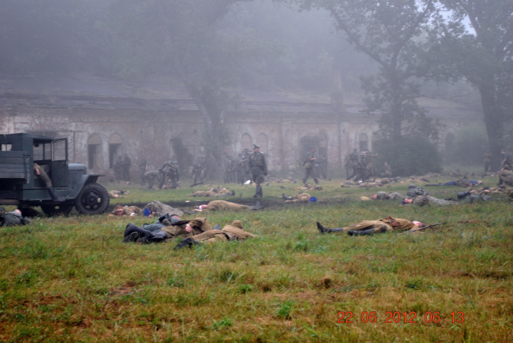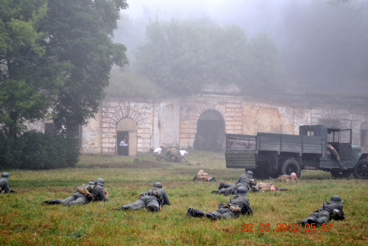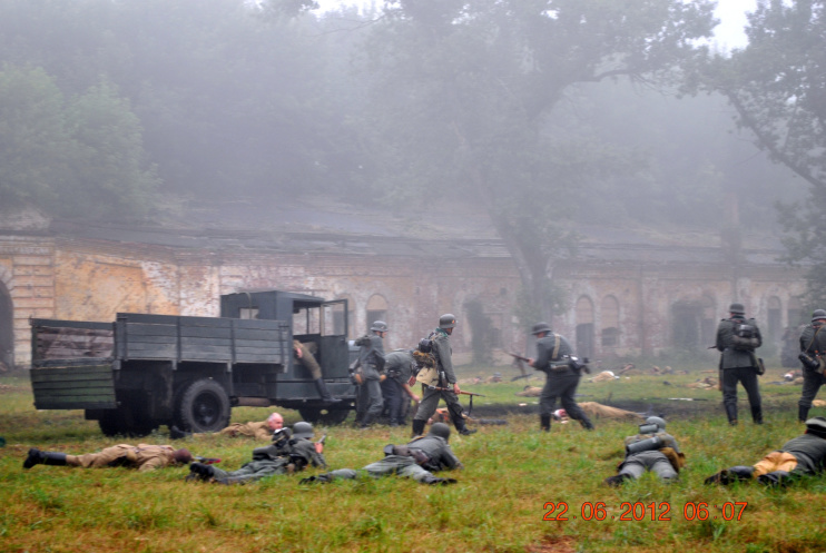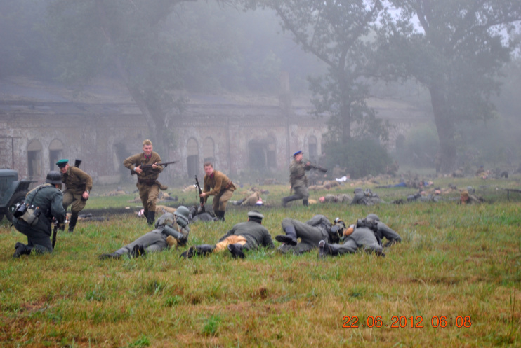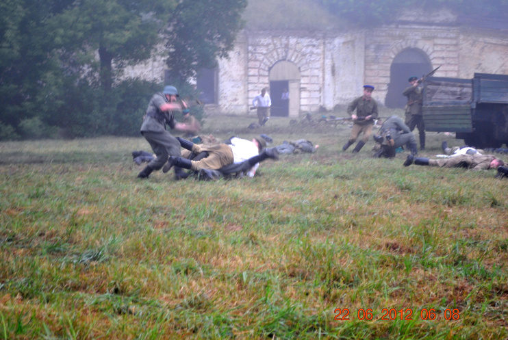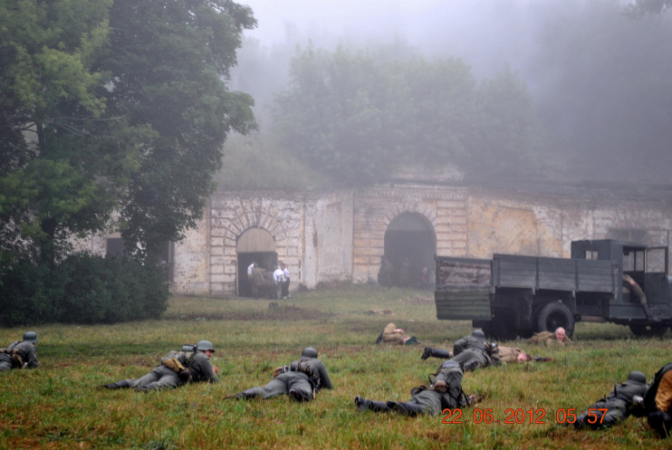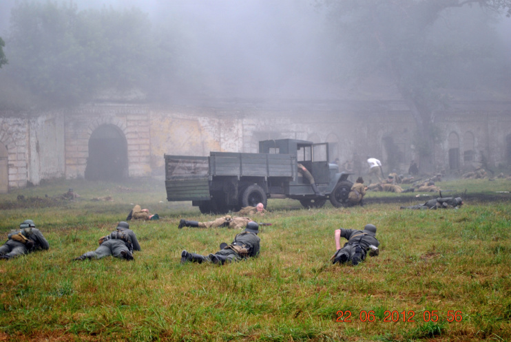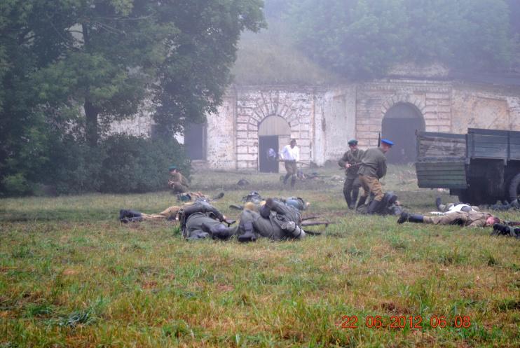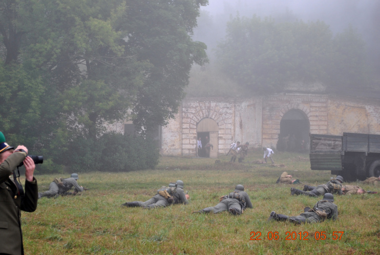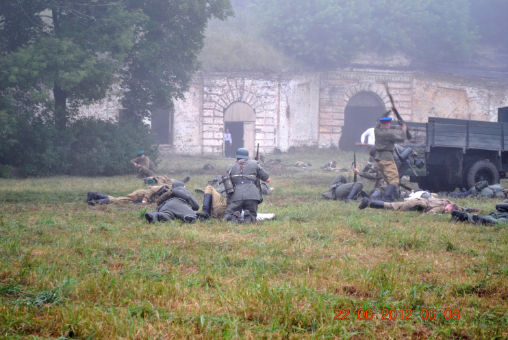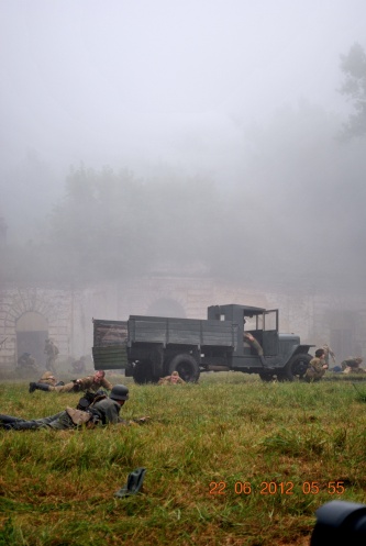 22 июня 2012. Около трех утра. Бегом на кухню. Так бутерброды, термос с чаем, главное фотоаппарат не забыть… В крепости сегодня реконструкция событий 1941 года. Поезд памяти привез ветеранов ВОВ, приехало около 40 поисковых отрядов из разных уголков России , Беларуси , Украины. Адреналин мешает сосредоточиться . Бегом в машину. По ночному Бресту добраться до крепости можно легко , без пробок, единственная запарка – все подходы к самой крепости перекрыты кордонами милиции. В приемнике машины играет «Довоенный вальс» на стихи Феликса Лаубе