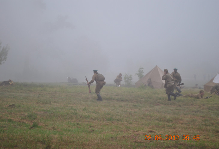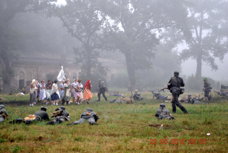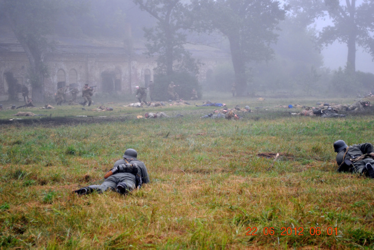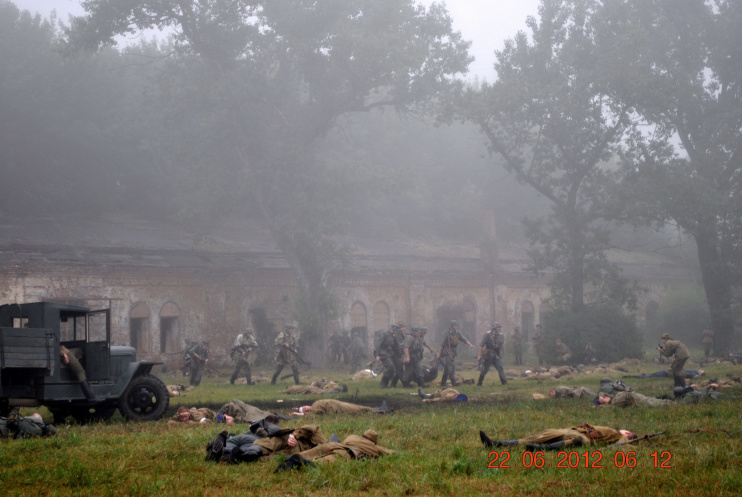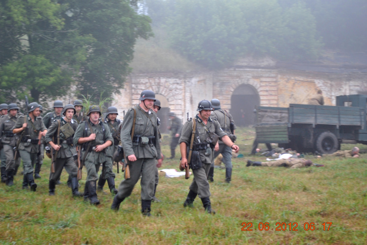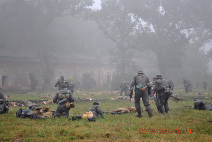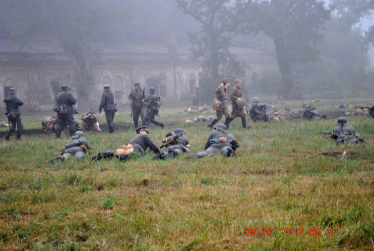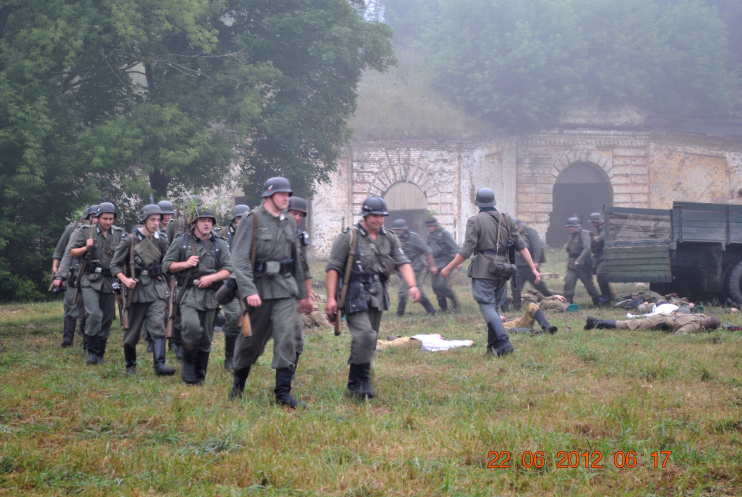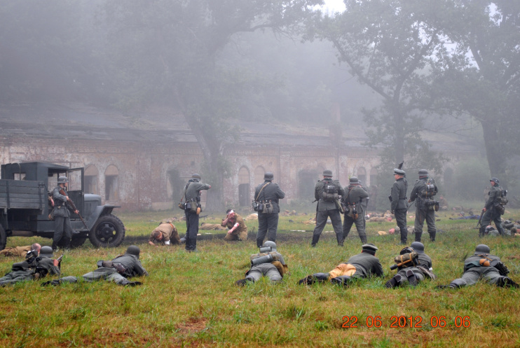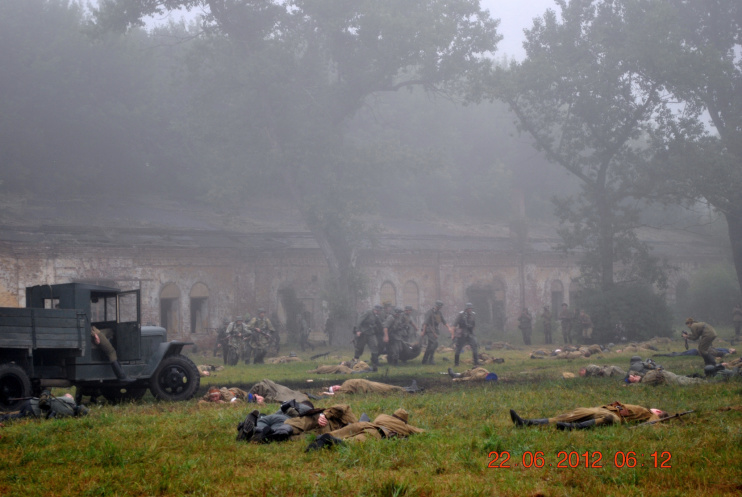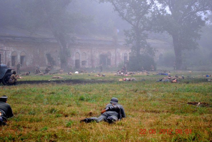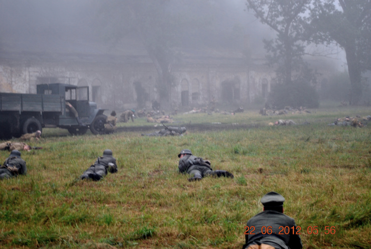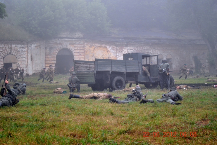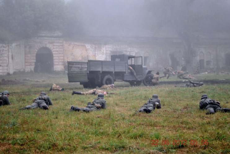 22 июня 2012. Около трех утра. Бегом на кухню. Так бутерброды, термос с чаем, главное фотоаппарат не забыть… В крепости сегодня реконструкция событий 1941 года. Поезд памяти привез ветеранов ВОВ, приехало около 40 поисковых отрядов из разных уголков России , Беларуси , Украины. Адреналин мешает сосредоточиться . Бегом в машину. По ночному Бресту добраться до крепости можно легко , без пробок, единственная запарка – все подходы к самой крепости перекрыты кордонами милиции. В приемнике машины играет «Довоенный вальс» на стихи Феликса Лаубе