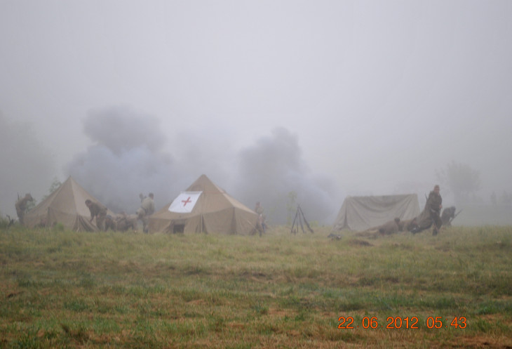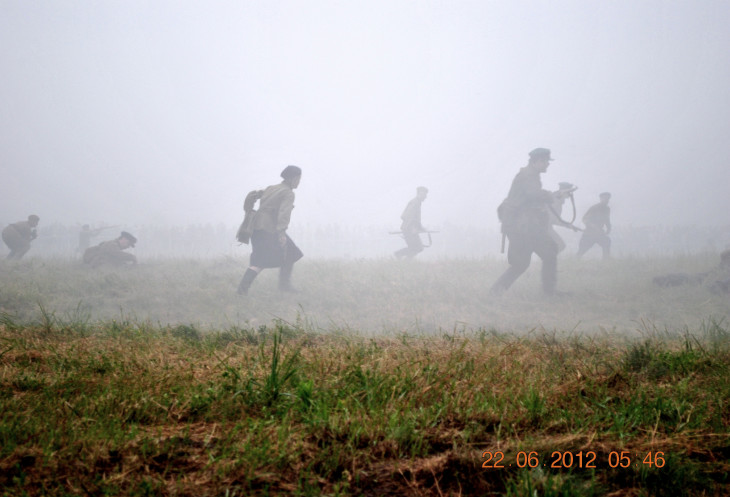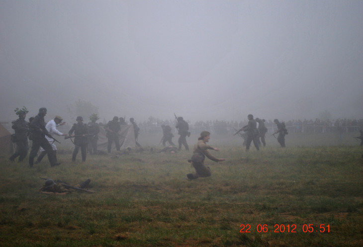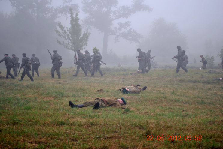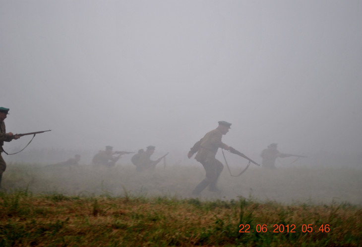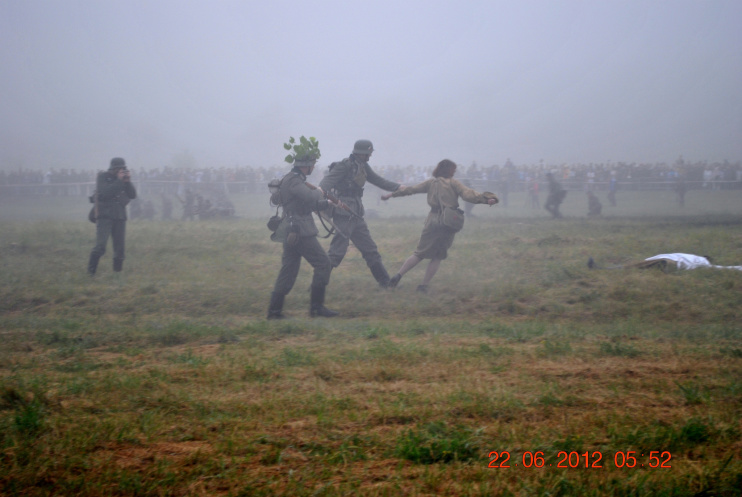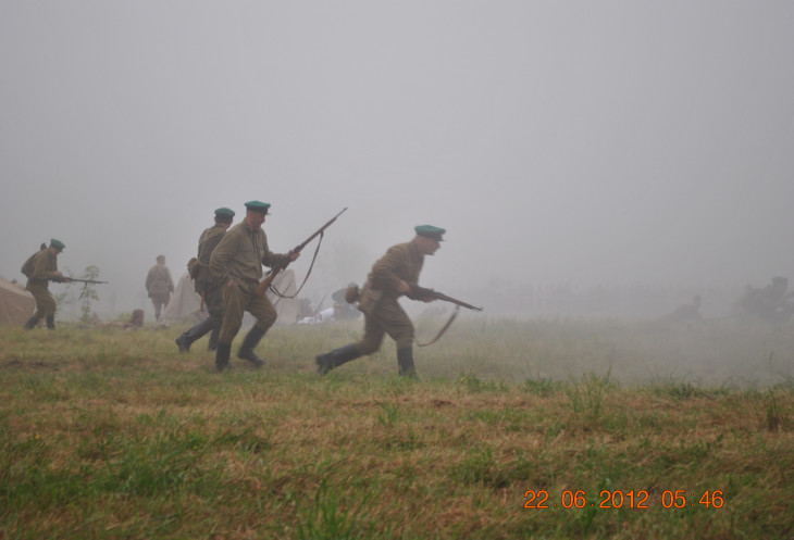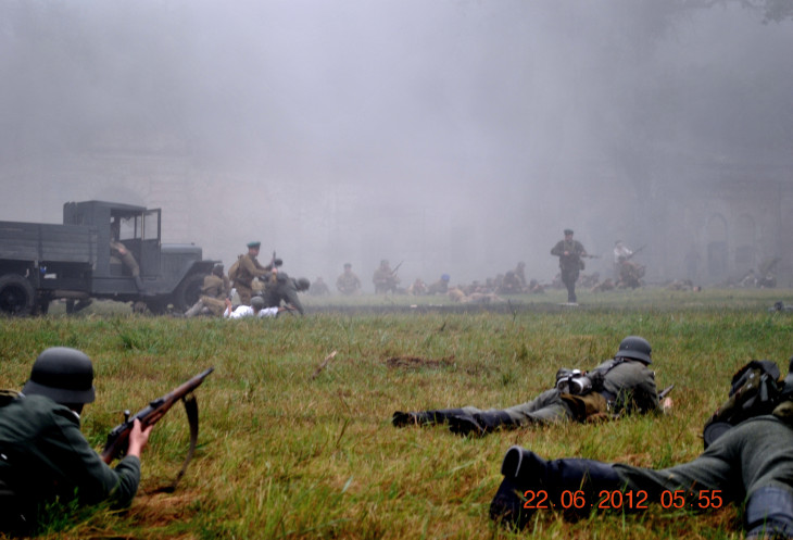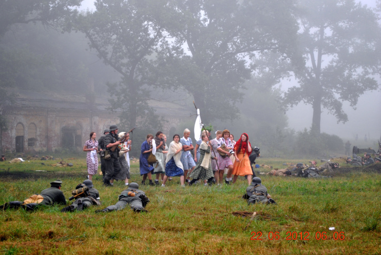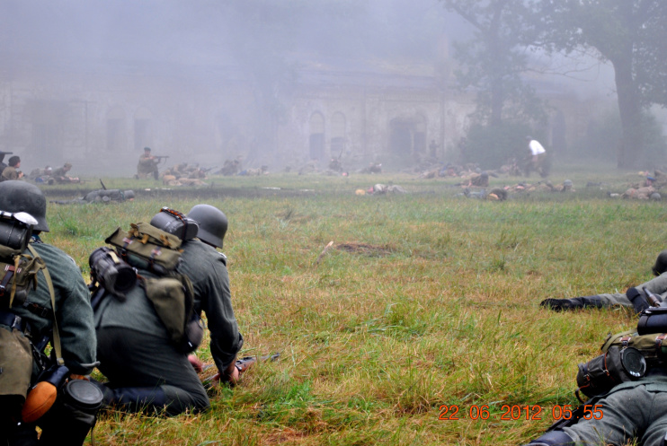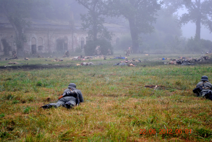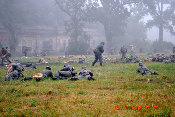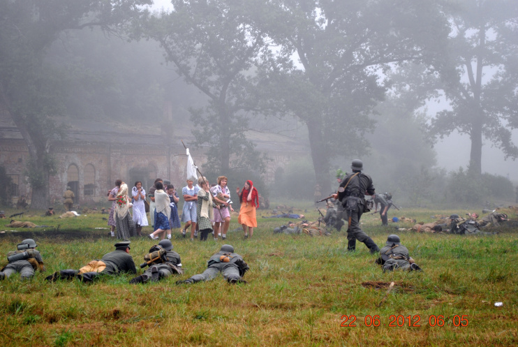 22 июня 2012. Около трех утра. Бегом на кухню. Так бутерброды, термос с чаем, главное фотоаппарат не забыть… В крепости сегодня реконструкция событий 1941 года. Поезд памяти привез ветеранов ВОВ, приехало около 40 поисковых отрядов из разных уголков России , Беларуси , Украины. Адреналин мешает сосредоточиться . Бегом в машину. По ночному Бресту добраться до крепости можно легко , без пробок, единственная запарка – все подходы к самой крепости перекрыты кордонами милиции. В приемнике машины играет «Довоенный вальс» на стихи Феликса Лаубе