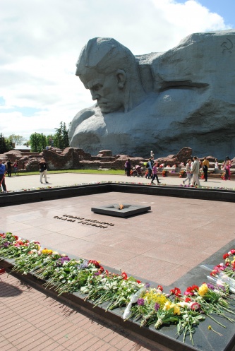 Возле Вечного огня постоянно живые цветы.