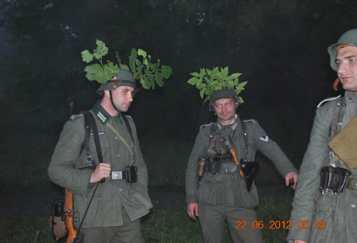 Немецкие каски с ветками и немецкая форма !