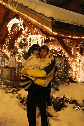 И мы шли по этой тихой сказке, и возле украшенных витрин остановились, и я, как маленькая залезла на ручки к любимому мужчине... И была совершенно счастлива... И, казалось, что вот-вот появится Дед Мороз. На голубом вертолете, на оленьей упряжке, а может и просто на лыжах (ему же близко). И подарит мне то самое, долгожданное, которое я загадывала весь год...