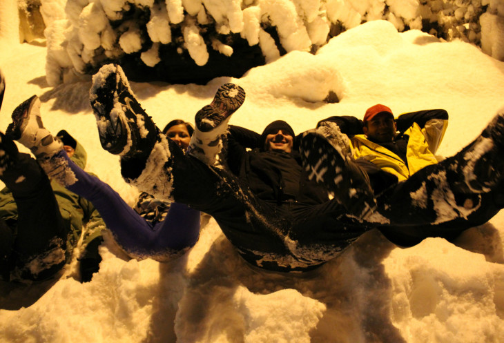 Снег......какой тут снег!!!!! Он легкий, пушистый, невесомый, и совсем не холодный. Это не наш, привычный, который колко ложится в руки, и потом ладошки горят и пощипывают. Кажется, в него можно зарыться и укрыться, и укутаться.... и так и лежать, с абсолютным ощущением, что тебя обнимает облако...