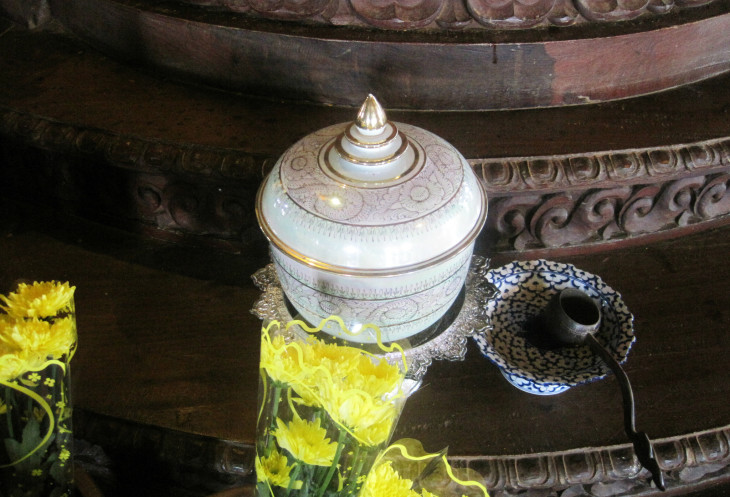 Тайцы подходили, клали деньги и их окроплял водой монах.