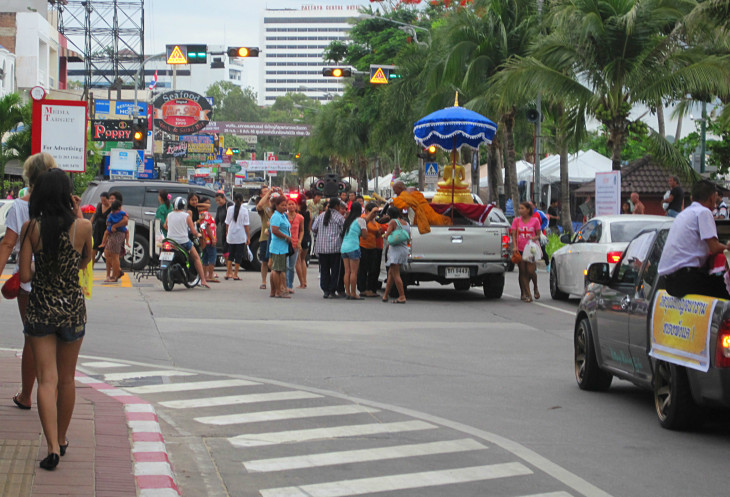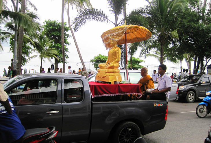 Первый день полнолуния в восьмом месяце по лунному календарю в 2012 году пришёлся на второе августа. В этот день отмечается один из самых важных буддийских праздников - Асаха Пуджа. Этот день считается днем основания буддизма. По набережной медленно ехала машина с восседающим золотым буддой.