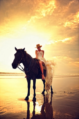 Две недели на Бали у нас были расписаны буквально по часам: ведь надо было совместить приятное с полезным - съездить на экскурсии и сделать фотосессию, ради которой, собственно, мы и прилетели на Бали. Наша съемка проходила в течение трех дней: в первый мы снимались в нашем номере, на балконе под рабочим названием "Утренний кофе на Бали". Второй день был полностью посвящен сессии на территории нашего отеля. На третий же день мы отправились в Семиньяк для съемки на черном пляже из вулканического песка на закате с лошадью.