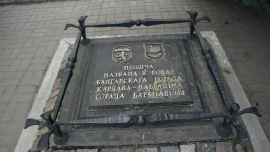 The memorial sign "Baranovichi - twin town of Karlovo" •
