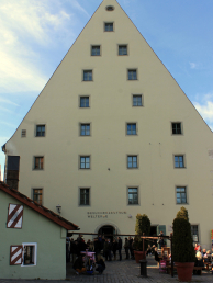 Знаменитая «Историческая колбасная кухня», или «Историческая кухня приготовления пищи и колбасы» - находится недалеко от Каменного моста, на южном берегу Дуная. При проведении археологических раскопок, было обнаружено, что именно на этом месте ранее располагалось аналогичное заведение питания, которое, может быть, являлось, первым в истории. Существует доказательство того, что уже во время строительства Каменного моста и Кафедрального собора Святого Петра, в XII веке, рабочие и каменщики могли утолить здесь свой голод, поев вкусных мясных колбасок. Многочисленные регенсбургские портовые грузчики посещали это заведение из-за непосредственной его близости от порта. Колбаски, приготовленные из свежайшего мяса, жарятся на открытом огне мангала на глазах у посетителей. Традиционное меню, которое не менялось на протяжении около 900 лет, включает жареные колбаски с домашней горчицей и кислой капустой в качестве гарнира. Кислую капусту (Sauerkraut) здесь заквашивают по своим собственным сохранившимся старым рецептам, в собственном подвале. Для этого ежегодно закупается около 80 тонн свежей белокочанной капусты. Ежедневно в «Исторической колбасной кухне» продаётся около 6000 жареных мясных колбасок. Посетители «Исторической колбасной кухни» могут посидеть на скамейках за столиками на улице, либо во внутреннем помещении заведения."