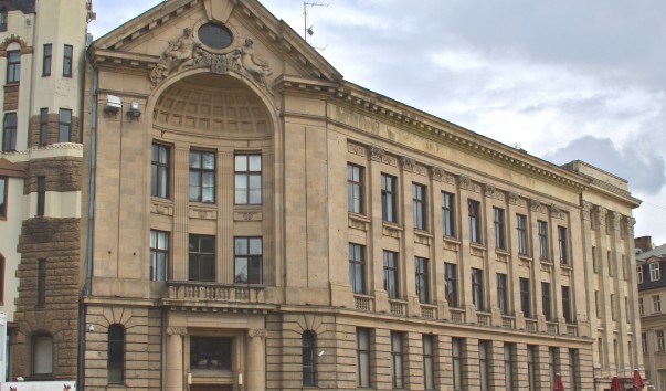 Первый Рижский коммерческий банк (основан в 1871 году) построен в 1913-1926 годах архиепископом Павлом Мандельштамом в стиле европейского неоклассицизма.