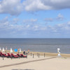 Широкий, длинный пляж с мелким песком, не очень много людей. Всё ухоженно, есть кабинки для переодевания, туалеты, бары. Было бы идеальное место для отдыха, если бы не климат. Рискуете весь отдых гулять под дождём, время от времени щупая довольно холодную воду Балтийского моря
