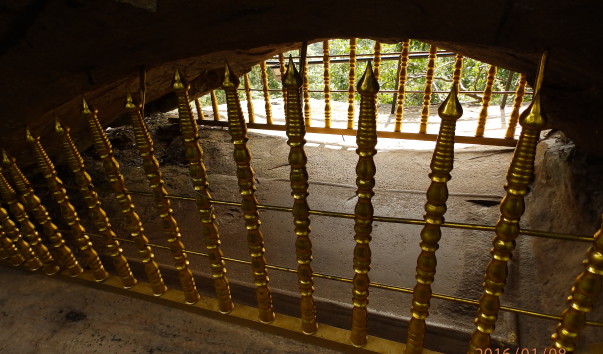Следуя по тропинке между Ступой Амбасталой и Скалой Приглашения, узкая дорожка приведет к Пещере Махинды, где он жил и медитировал. Здесь же можно увидеть так называемую кровать Махинды – плоская скальная плита. Кровать огорожена забором, на ложе Махинды туристы бросают монеты и загадывают желания веря в то, что они исполнятся. Мы тоже так сделали.
