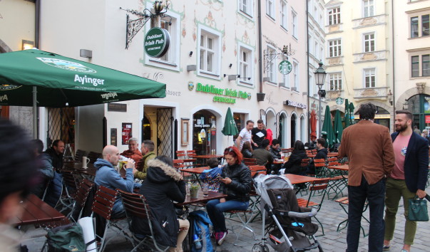 Если кто-то из туристов устал от немецкого гостеприимства или например соскучился по вкусу Guinness или Kilkenny,то на площади Плятцл, прямо напротив Хофбройхауса есть замечательный ирландский паб.Здесь,помимо традиционных британских напитков есть несколько TV экранов,на которых постоянно транслируют спортивные мероприятия по всему миру.Именно здесь я смотрел заключительный матч мюнхенской "Баварии" в победном для неё чемпионате.Народу всегда много,немного шумновато,пиво льётся рекой,но что ещё нужно настоящему фанату спорта и британского колорита.Кстати,для любителей немецкого пива здесь разливают известное Ayinger.