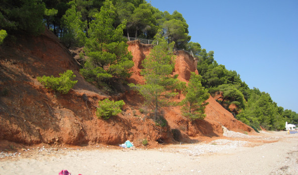 В целом очень живописный пляж с бухтами и соснами, спускающимися к морю.