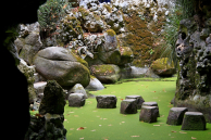 В верхней части парка находится дикий и неухоженный лес, в то время как в нижней — облагороженный руками человека. Наряду с такими «природными» элементами садово-парковой архитектуры, как озёра, каналы, гроты и пещеры с подземными тоннелями, парк украшают высокие башни, беседки, резные скамейки и статуи.
