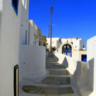 Типичный на острове синий купол церкви соседствует с высокой колокольней. Его колокольня выделяется издалека, а сама церковь возвышается внушительно в центре деревни.