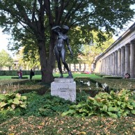 Ближе к зданию Национальной галереи расположился обновлённый фонтан с каменными скамейками.