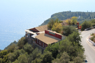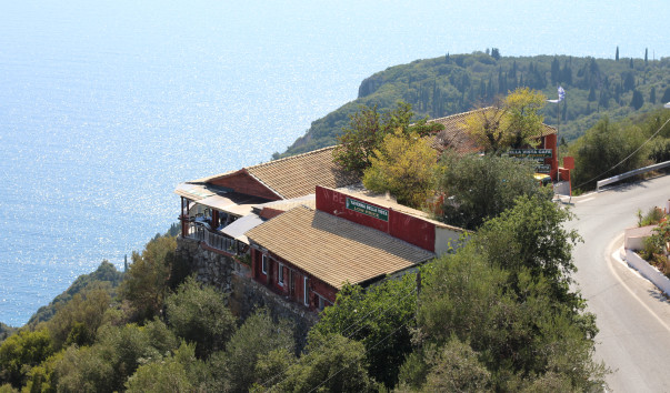 Это туристическое место. Именно сюда привозят автобусы туристов посмотреть со смотровой площадки великолепные виды на знаменитую Палеокастрицу. Рядом с парковкой автобусов есть таверна, где каждый желающий может перекусить, сходить в туалет или просто сделать несколько замечательных фотографий с видами "с высоты орла". В меню вся греческая кухня, а так же напитки. Официанты работают быстро и слажено. Средний чек = 10-15 евро с человека.