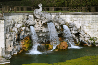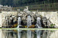Фонтан расположен в Парке королевской резиденции в Казерте. Он является частью знаменитой дороги воды - множества фонтанов, изображающих сцены из классической мифологии, и семи бассейнов,соединённых водопадами. Фигуры дельфинов выполнены из травертина скульптором Гаэтано Саломоне между 1776 и 1779 годами, а дизайн фонтана разработал архитектор Карло Ванвителли. В этом фонтане не все дельфины являются дельфинами. Странного зверя с когтистыми лапами, которыми он мертвой хваткой вцепился в утес, называют Морским монстром. Водяные струи падают с высоты около 3 метров в бассейн длиной 470 метров и шириной 27 метров. За скалой с дельфинами находился грот для романтического уединения. В 1781 по указу короля Фердинанд IV сделали специальное освещение дороги от дворца до фонтана Дельфинов, чтобы можно было беспрепятственно добираться сюда даже ночью.