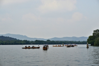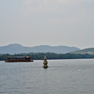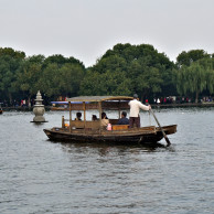 Три миниатюрные каменные пагоды стоят у острова Сяоинчжоу прямо в воде. Они построены более 800 лет назад и имеют высоту 2 метра. Эти пагоды являются центральной частью сцены «Три бассейна отражающие луну» (это одна из «10 видов Сиху» - знаменитых картин эпохи династии Сун).