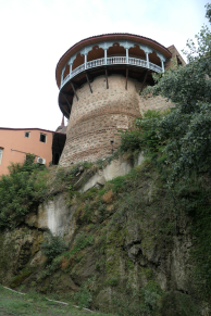 Дворец венчает холм подобно птичьему гнезду. Ажурный балкон, полукругом обвившийся вокруг башни, смягчает суровость постройки. Комплекс построен в крепостном стиле. Это дань беспокойным временам. Грузия постоянно подвергалась набегам горцев. И соседи рядом были весьма неспокойные – мягко говоря. Даже в столице люди не могли чувствовать себя в безопасности. Не помог и военный союз с Россией. Георгиевский трактат оказался весьма шатким гарантом на безопасность - всего лишь шесть лет спустя после постройки дворца для царицы, Тбилиси сравняли с землей орды Ага-Мохамедхана. Дворец также подвергся разграблению.
