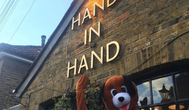 Паб "Рука в руке" расположен на западе Лондона в "теннисном" районе Уимблдон. Он известен прежде всего своей любовью к животным и в частности собакам. Паб неоднократно получал призы от английской прессы за эту свою "особенность". Дружелюбный персонал часто даже называет свой паб - Paw in Paw (Лапа в лапе). Заведение на следующий год отпразднует 200-летний юбилей своего существования.Адрес паба в городе: Wimbledon Common 6 Crooked Billet, SW19 4RQ. В баре есть неплохой выбор пива и эля. Кухня традиционная британская: сытная и незатейлива. У девчонок барменшей есть обязательные вкусняшки для лохматых посетителей. Курение внутри категорически запрещено по закону страны. В помещении есть Wi-Fi с хорошим приёмом. У паба есть свой летний сад.