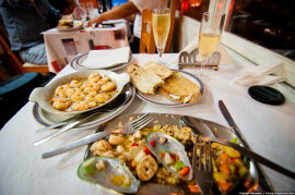 Рекомендую к обязательному посещению всем любителям морепродуктов. Совсем небольшое заведение, но еда на высшем уровне! В отзывах пишут, что столик желательно заказывать заранее, потому что мест часто не бывает. Я зашел за час до закрытия и пару столиков было свободно. Почти все блюда в меню рассчитаны более чем на одного человека, я нашел только пару наименований на одного, их и заказал :) Даже за мой небольшой заказик в конце заведение подарило бутылочку вина.