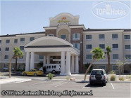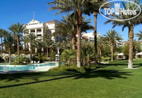 Вокруг здания расположился прекрасный зеленый парк с агавами и кактусами.