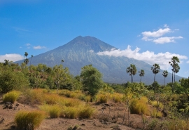 Вулкан Агунг является самой высокой точкой на острове Бали. Его высота составляет 3142 метра. Агунг настолько величественен, что оказывает влияние на климат окружающей местности. Западный склон горы обильно покрыт зеленью, так как своей вершиной Агунг задерживает дождевые тучи, приносящие влагу с запада острова. По той же причине, оставляя восточную часть склона сухой и бесплодной на долгие месяцы.