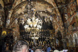 Церковь Михаила Архангела.Народу так много,что приходится фотографировать поверх голов.