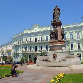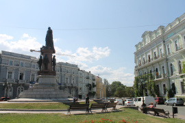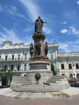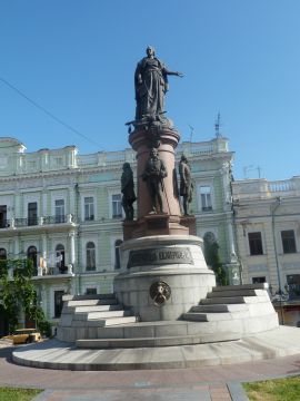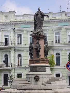 Памятник императрице Екатерине II и её сподвижникам (Платону Зубову, Григорию Потемкину, Францу де Волану, Иосифу Дерибасу) был установлен к 100-летию города. В советские времена он был заменён на памятник Потёмкинцам. Возрождение монумента в 2007 г. сопровождалось протестами национал-патриотов, которые выступали против увековечивания памяти угнетательницы, ликвидировавшей независимость Украины.