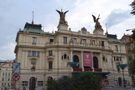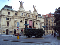Театр на Виноградах находится рядом на площади Мира, в Праге. Театр в стиле модерн был возведен в начале XX века, по проекту архитектора Алоиса Ченского, фасад здания украшают статуи Истины и Смелости.