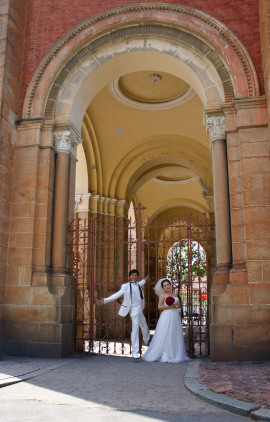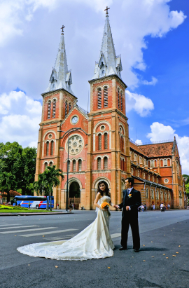 Молодожёны у собора Нотр-Дам де Сайгон.