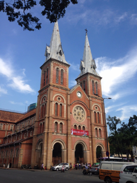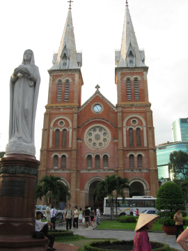 Собор Сайгонской Богоматери, или Нотр-Дам де Сайгон (Notre-Dame Cathedral Saigon) в Хошимине – это действующий католический храм XIX века. Иногда его называют Нотр-Дам де Пари в Сайгоне, поскольку он представляет собой копию французского Собора Парижской Богоматери. Нотр-Дам де Сайгон расположен в центральной части Хошимина – на площади Парижской Коммуны. История собора началась в 1876 году, когда французский губернатор Мари-Жюль Дюпре объявил о начале конкурса на строительство католического собора. По замыслу французских колонистов, большой христианский храм в центре города должен был стать идеологическим символом величия Западной цивилизации в этом регионе и «затмить» многочисленные буддийские пагоды в окрестностях. Победителем конкурса стал проект архитектора Жюля Бурара (Jules Bourard) в неороманском стиле с вкраплениями готики. Автор впоследствии активно курировал строительство.