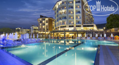 Назовите отель расположенный на горе ( 5*). там ещё есть лифты для спуска на пляж . Не могу вспомнить.... Блин.... Хочется взять путёвку именной тот отель- мы заезжали в него мимоходом.... И находится он справа от города , если ехать от Кушадас в Измир.